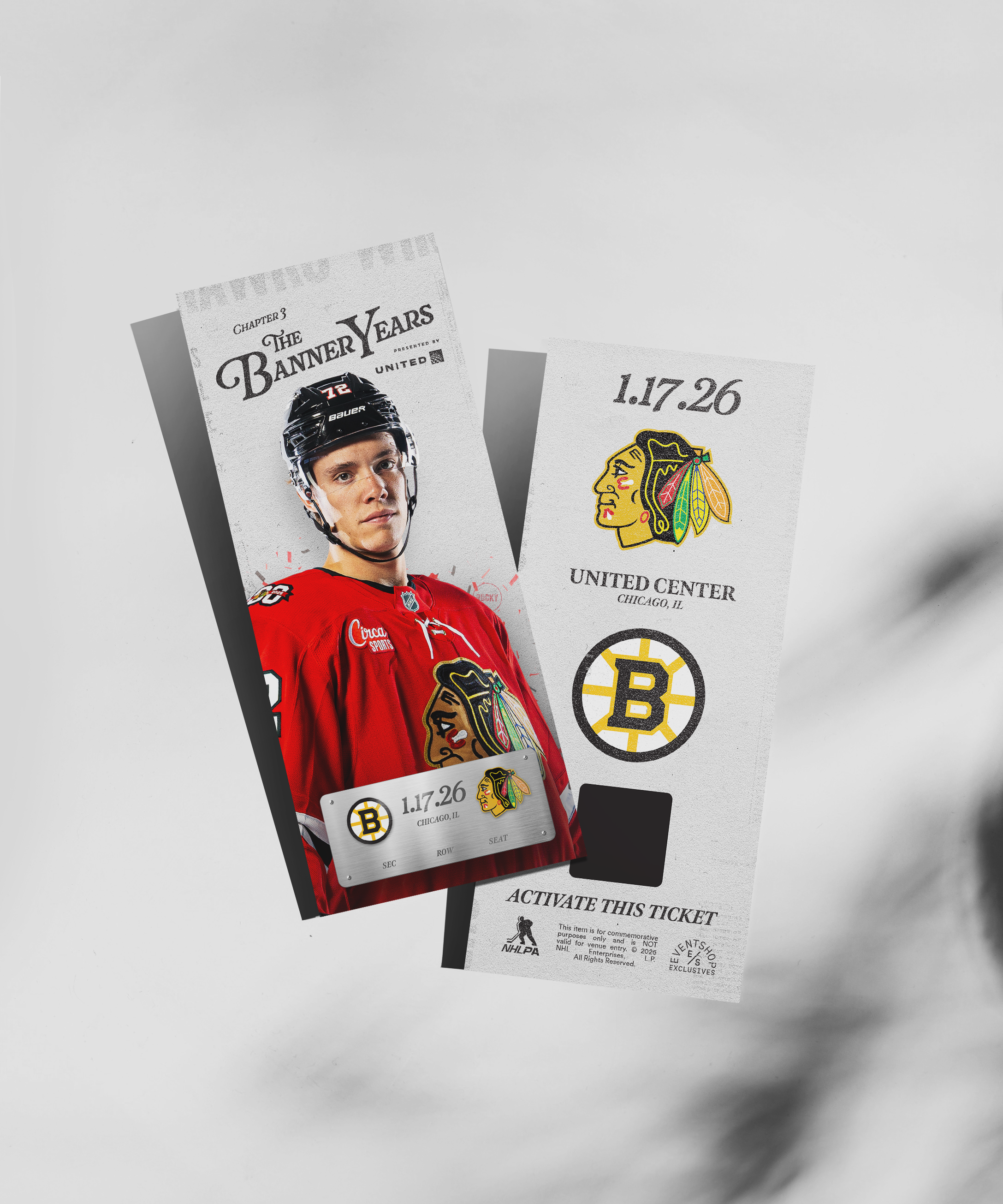 This commemorative ticket features the section, row and seat of your original ticket. Commemorating your Chicago Blackhawks experience.