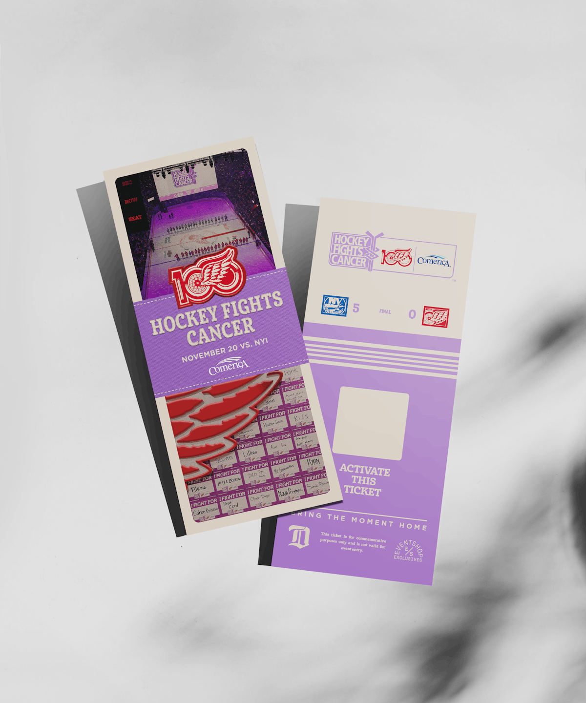 DET vs. NYI Hockey Fights Cancer Collectible Ticket