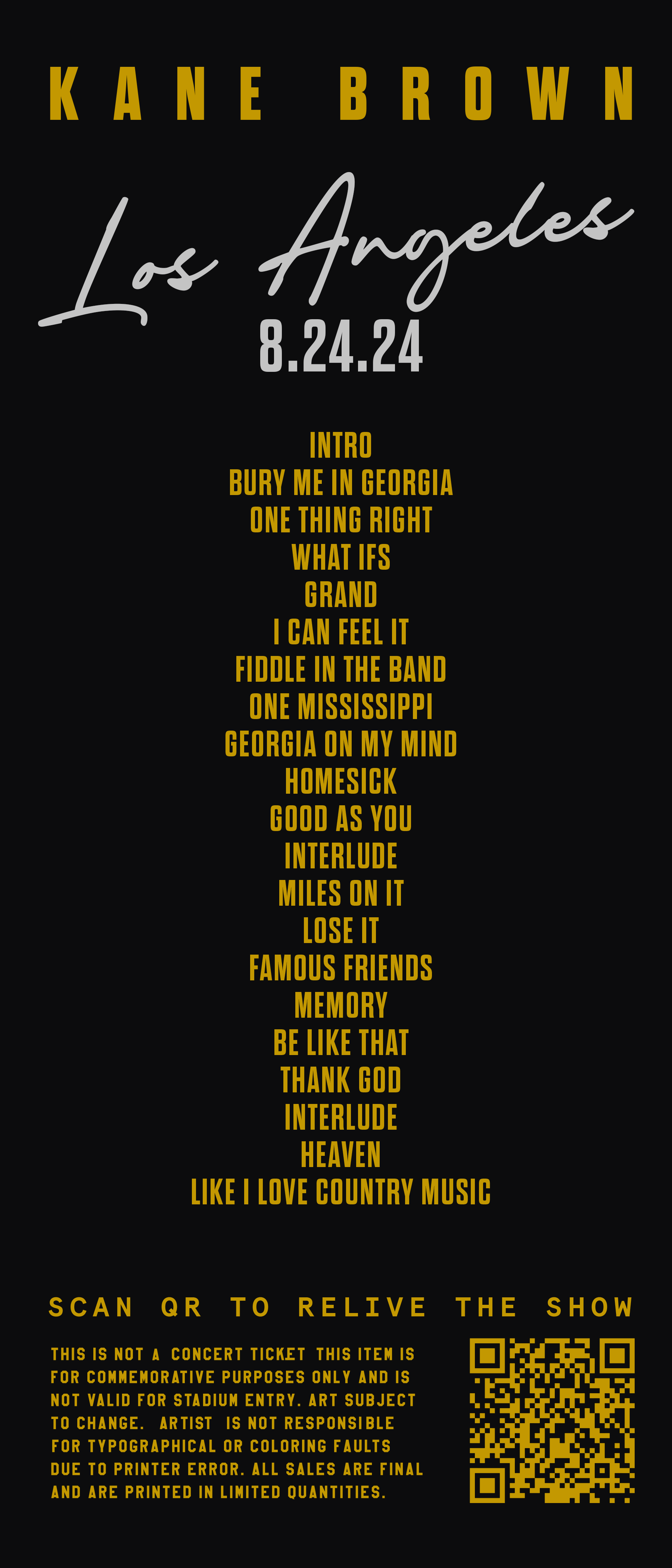 Commemorate your Kane Brown experience with this Los Angeles exclusive ticket.