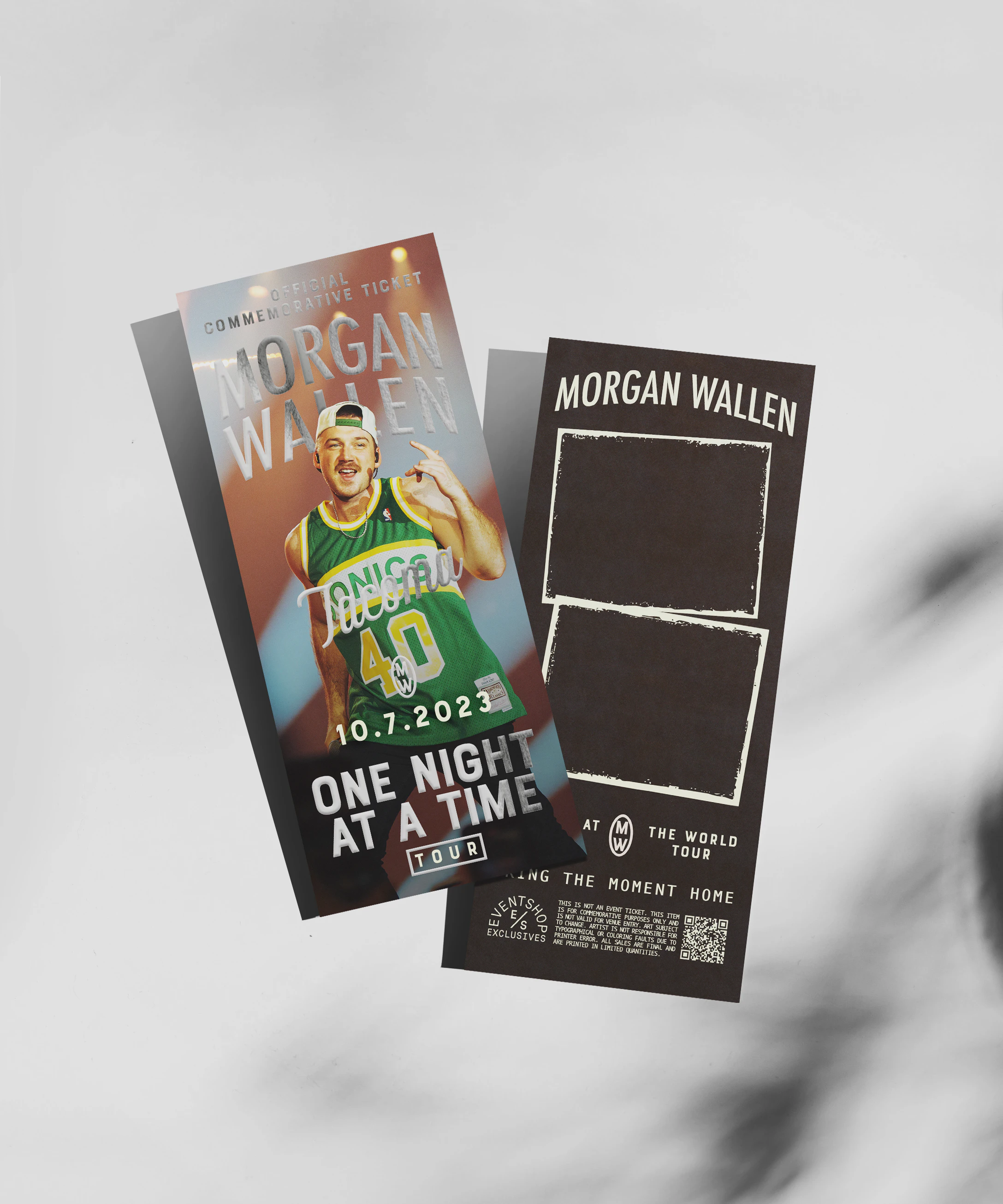 This city-exclusive commemorative ticket features a unique design showcasing the city and date of your Morgan Wallen show.