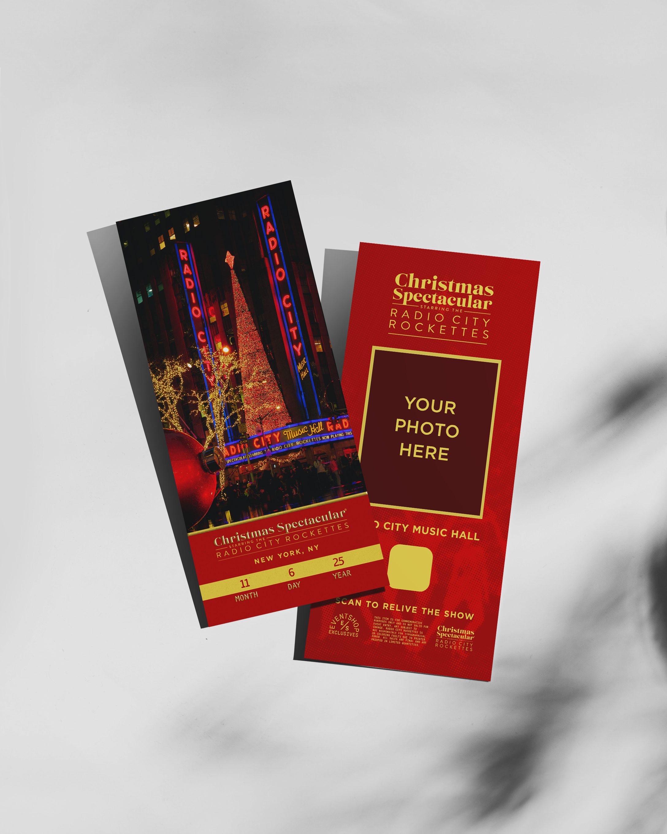 This city-exclusive commemorative ticket features a unique design showcasing the city and date of your Radio City Rockettes show.