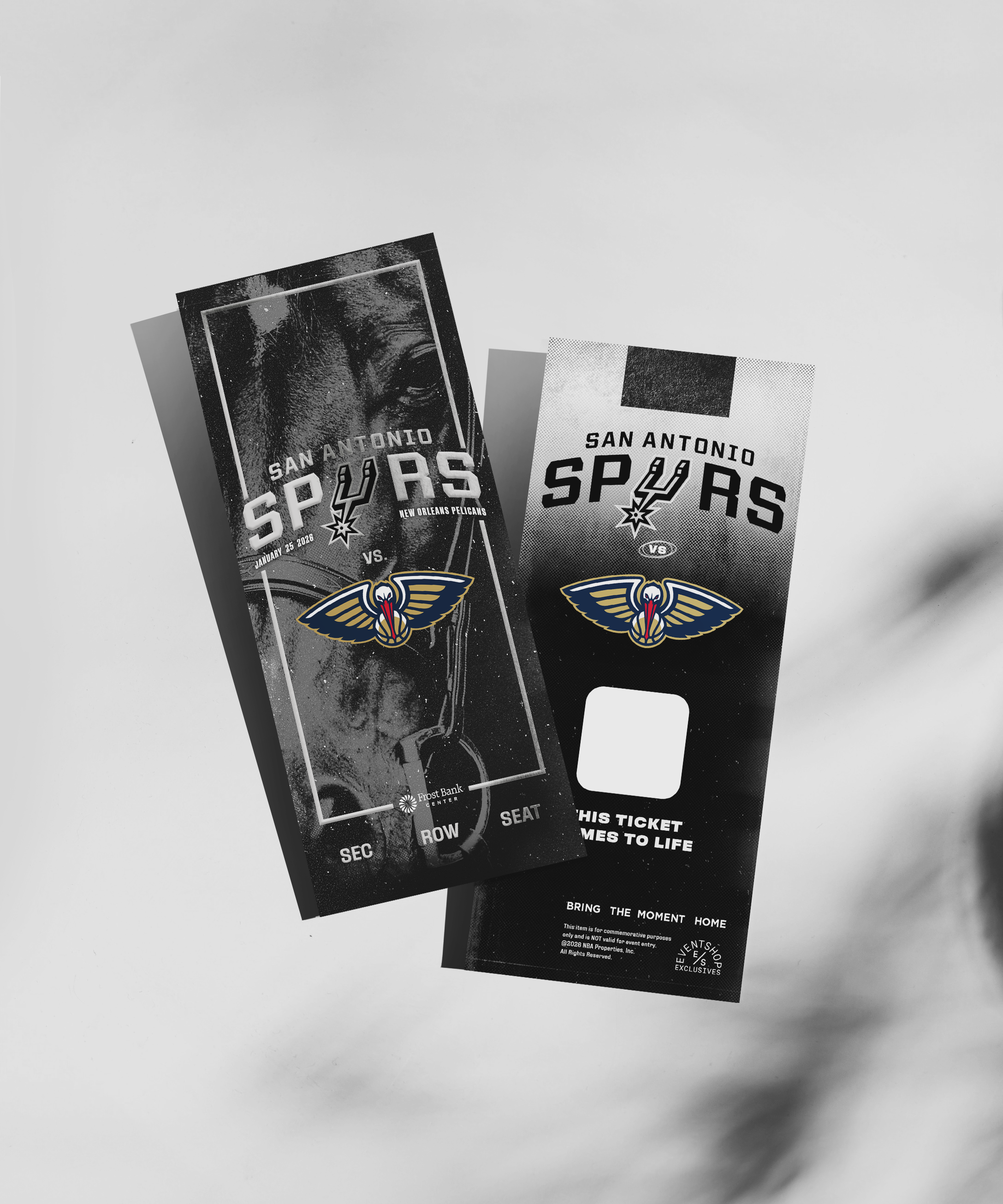 Commemorate San Antonio Spurs vs New Orleans Pelicans with this official commemorative ticket.